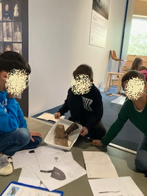 La classe de CM1 a rencontré 2 archéologues aux Champs Libres qui ont expliqué leur métier, leurs recherches, leurs découvertes et la façon dont ils menaient une fouille.
